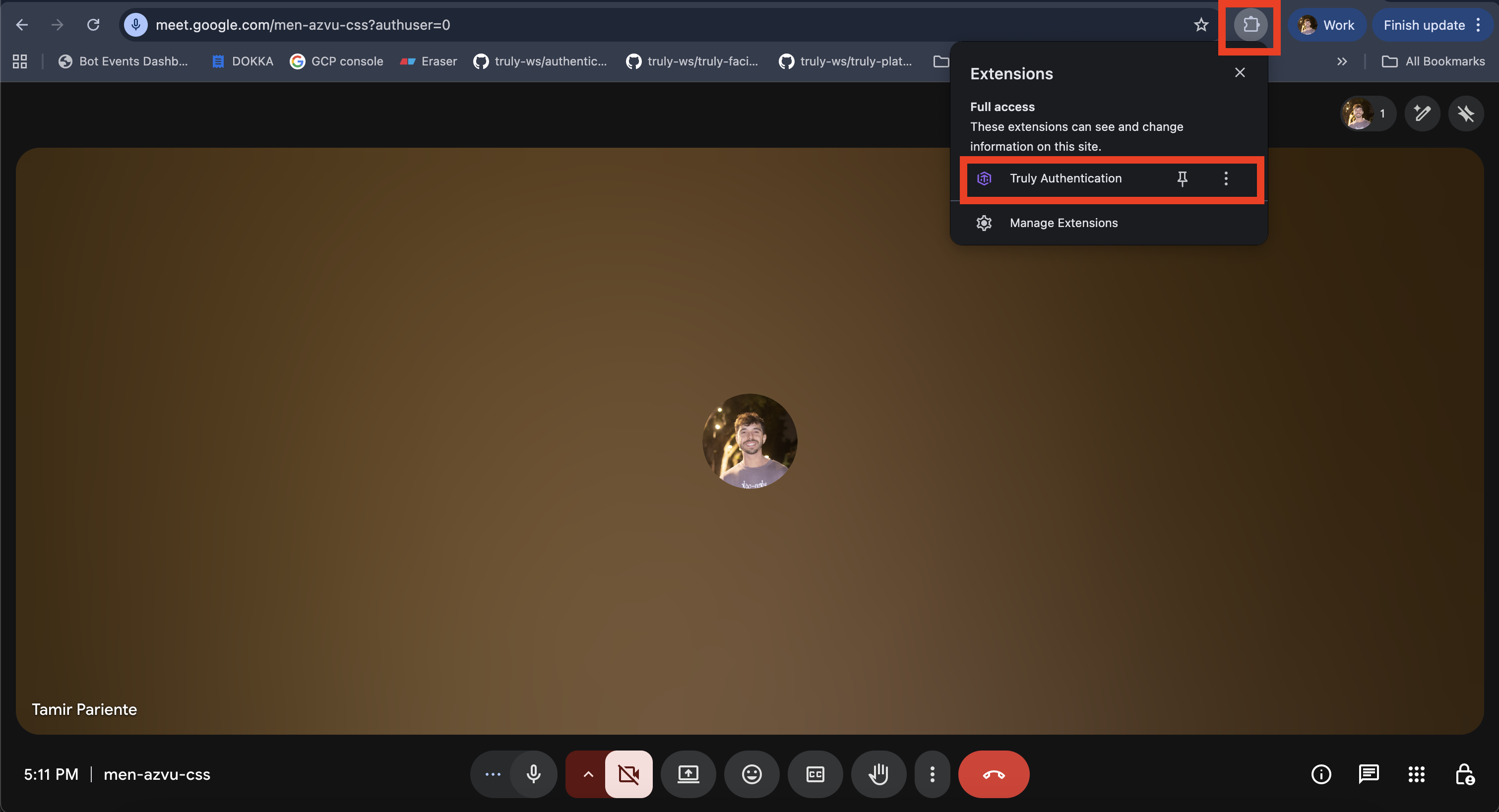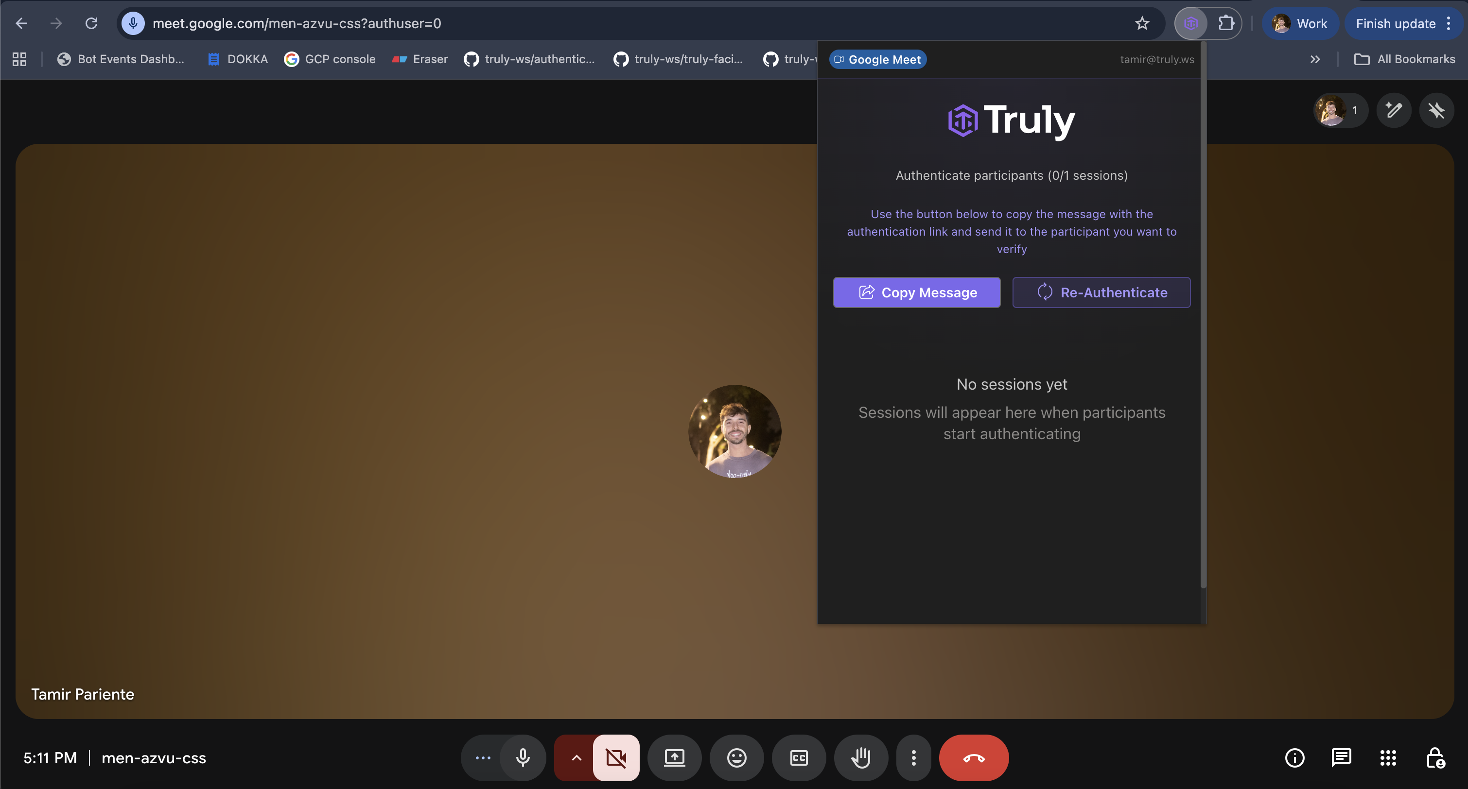 Use case: Verify the identity of a candidate or participant during a live Google Meet meeting. Prerequisites:- Truly extension is installed and visible in the browser